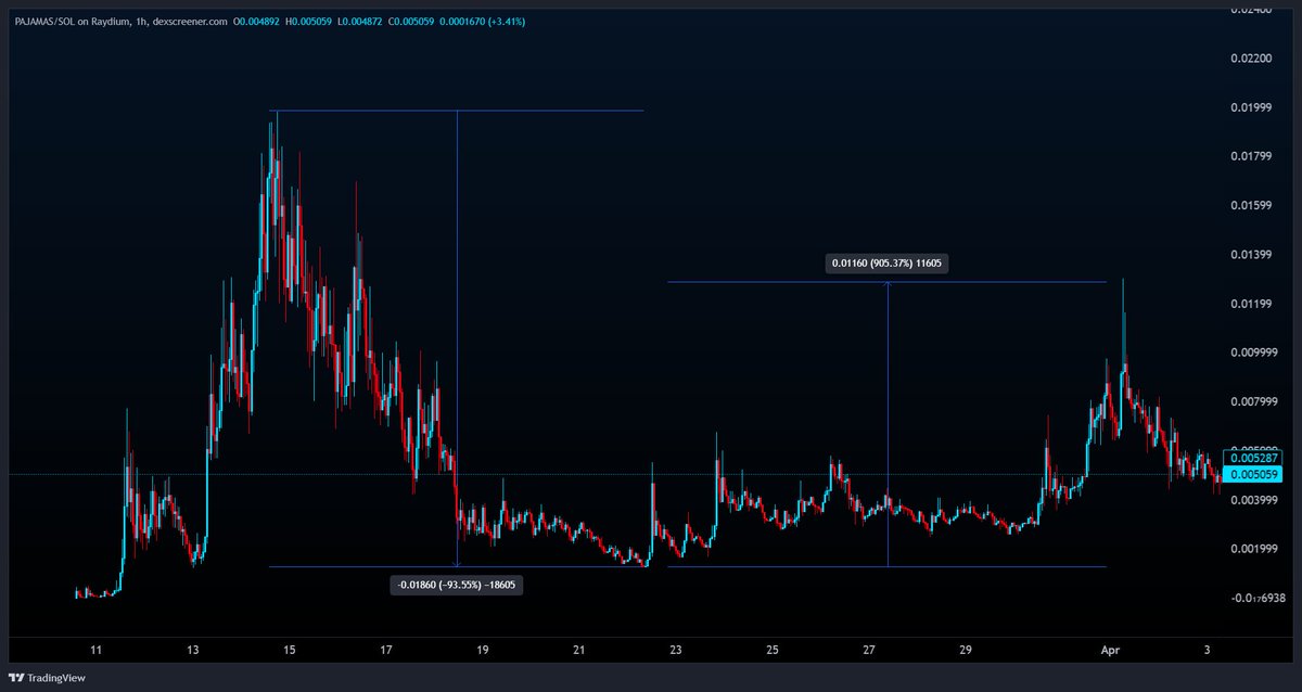 - 90-95% drawdown from ath on flavour of the day memes seem to reverse back for a few Xs usually (considering it hasnt been abandoned and bagholders are still believing in it)