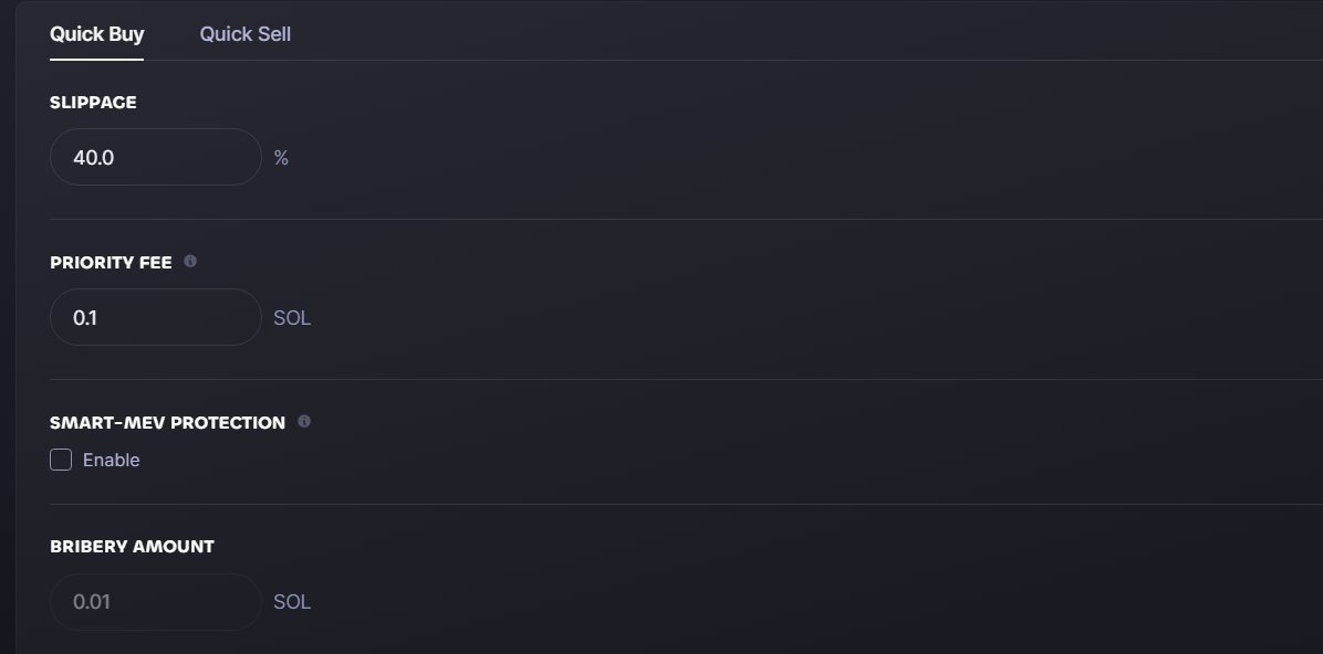 (35 slippage had some fails on newer launches but 40 works fine, prio fee is not needed to be that high, you can keep it at 0.01 unless you dont want failed txs at all and entry matters a lot) photon-sol.tinyastro.io/@jackaped