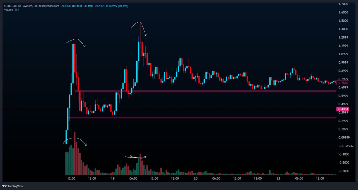 - run to 2-3m, hit the ceiling and get sold off to 0