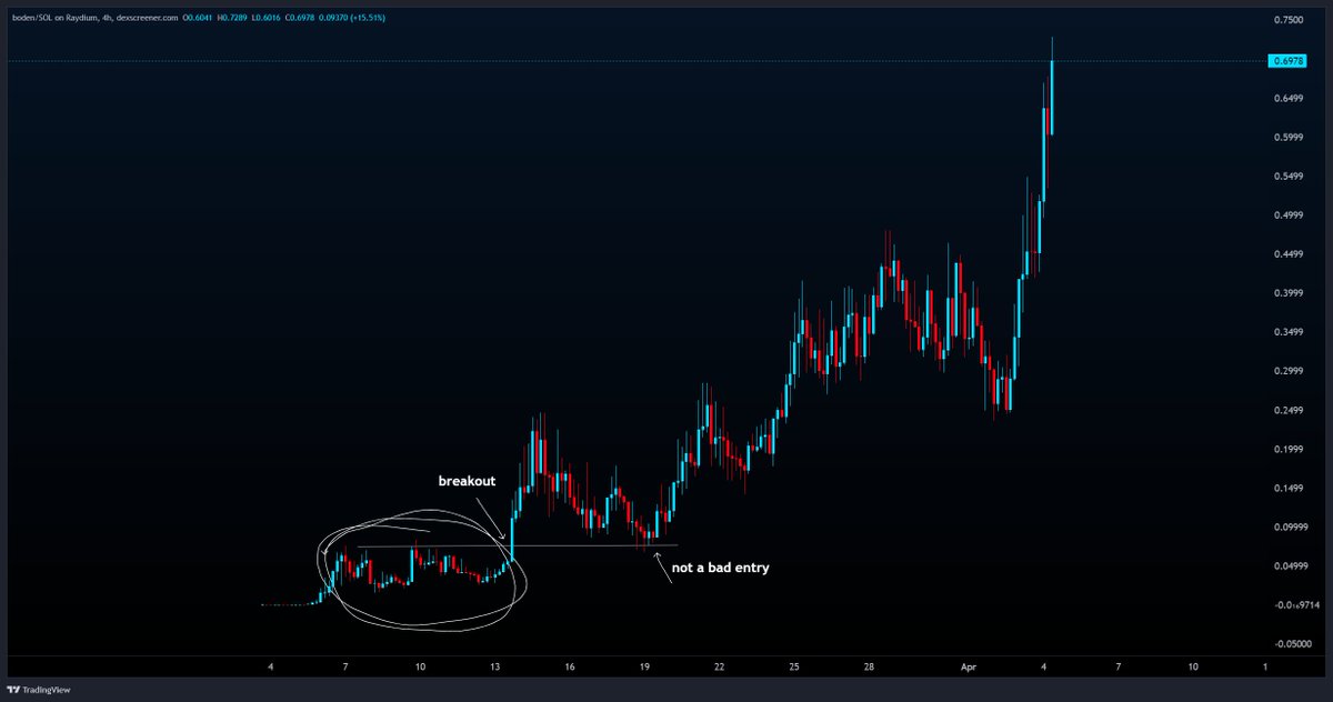 narratives work well here, you dont even have to peep the chart if you land a very viral irl meme early