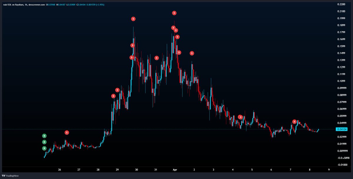 around 2 wks back caught the nub launch cuz good wallets i follow went in hard early on