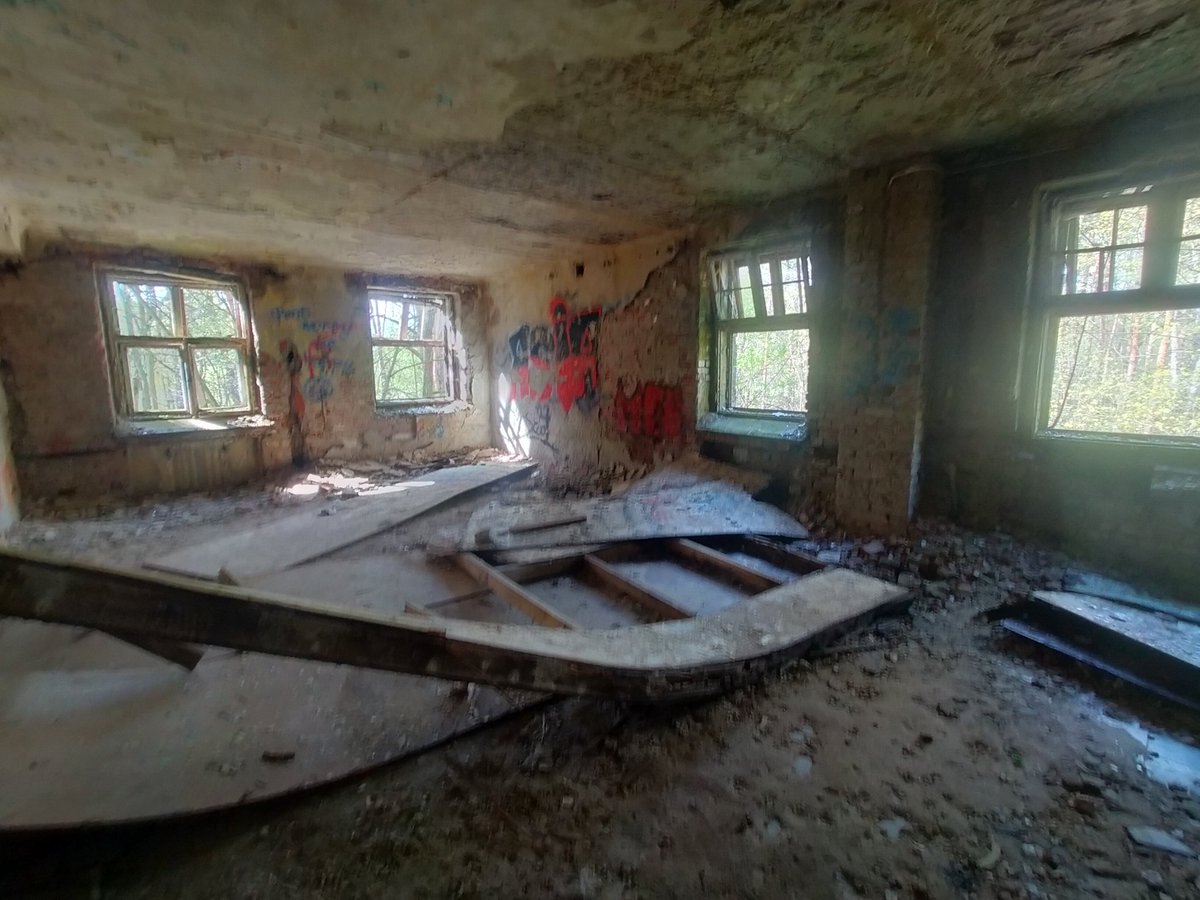 Kontynuując opowieść, wejdźmy do drugiego z opuszczonych budynków szpitala. Jak wygląda dziś wejście do niego, widzicie na zdjęciu poniżej.