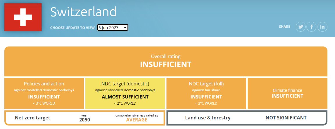 Effettivamente, non è che la🇨🇭sia messa troppo bene. Giusto un pelo meglio della media EU, ma di poco peggio della Germania e molto peggio di Norvegia, Bhutan o Costarica, per dire. climateactiontracker.org/countries/