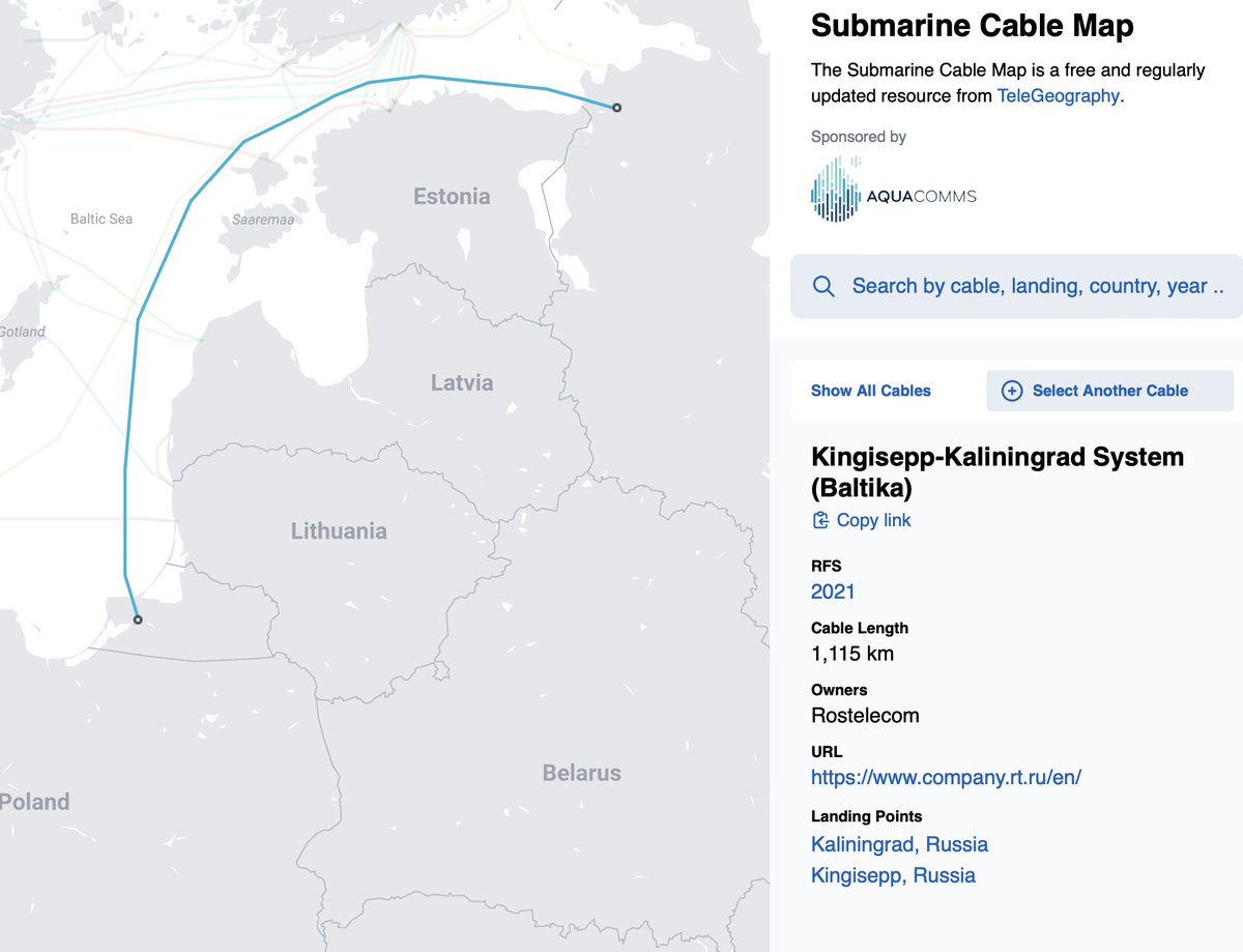 The Kaliningrad subsea communcations cable was severed last autumn.