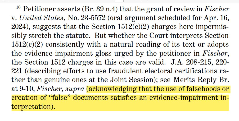 BUT--Jack (9-0 SCOTUS) Smith now claims even if SCOTUS overturns DOJ application of 1512c2, those related counts in his Trump indictment will stand.