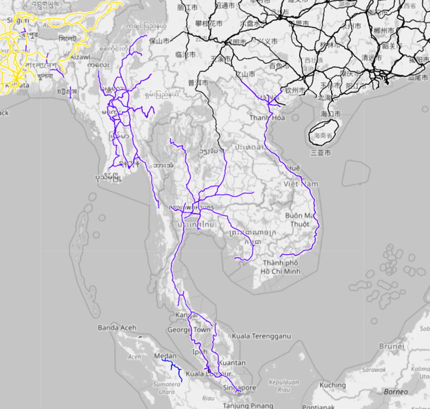 Et au milieu, la Chine, poursuivant l'expansion de son réseau ferré.