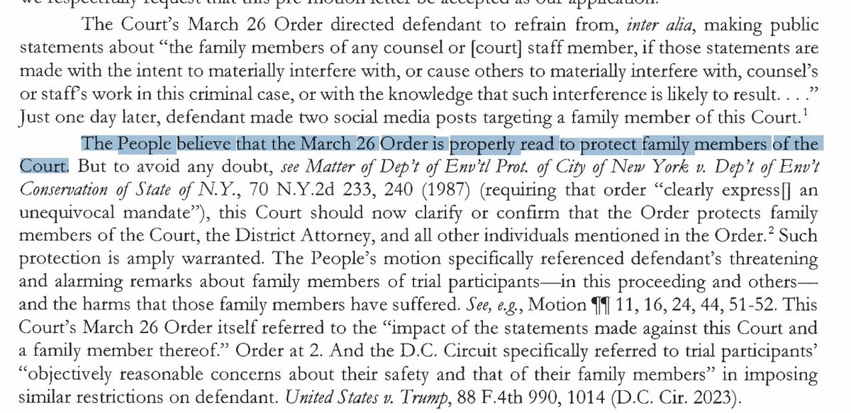 Manhattan DA Bragg fires a shot across the bow, telling the judge that the "properly read" gag order prohibits Trump from attacking the judge's daughter.