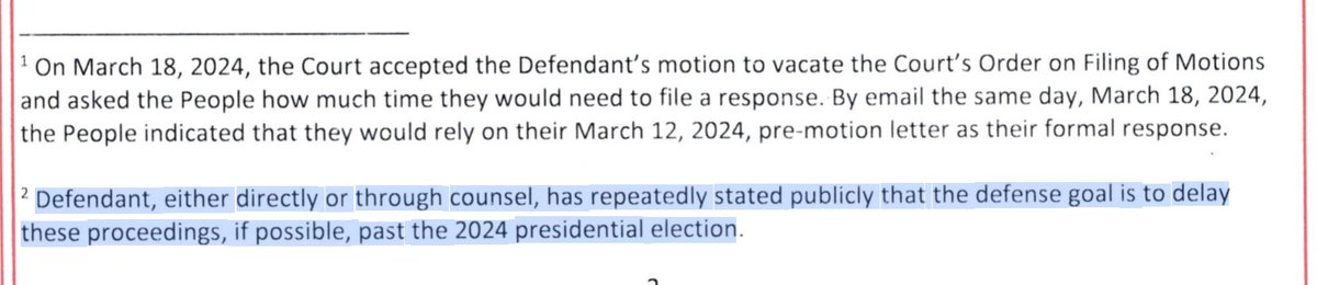 "[Trump], either directly or through counsel, has repeatedly stated publicly that the defense goal is to delay these proceedings, if possible, past the 2024 presidential election."