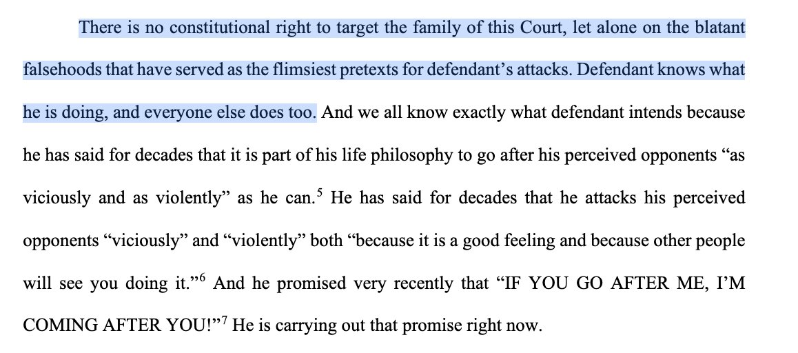 "There is no constitutional right to target the family of this Court, let alone on the blatant falsehoods that have served as the flimsiest pretexts [...] Defendant knows what he is doing, and everyone else does too."