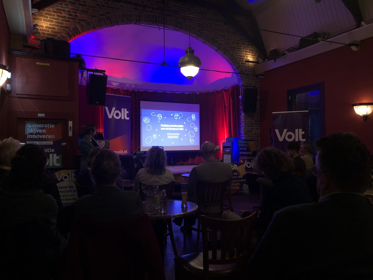 Er lopen nu wat mensen weg. Niet duidelijk of zij Volt zat zijn of dat ze niet weten hoe de EU te verkopen. Ik ben hier tot half tien. Benieuwd of we dan iets weten.
