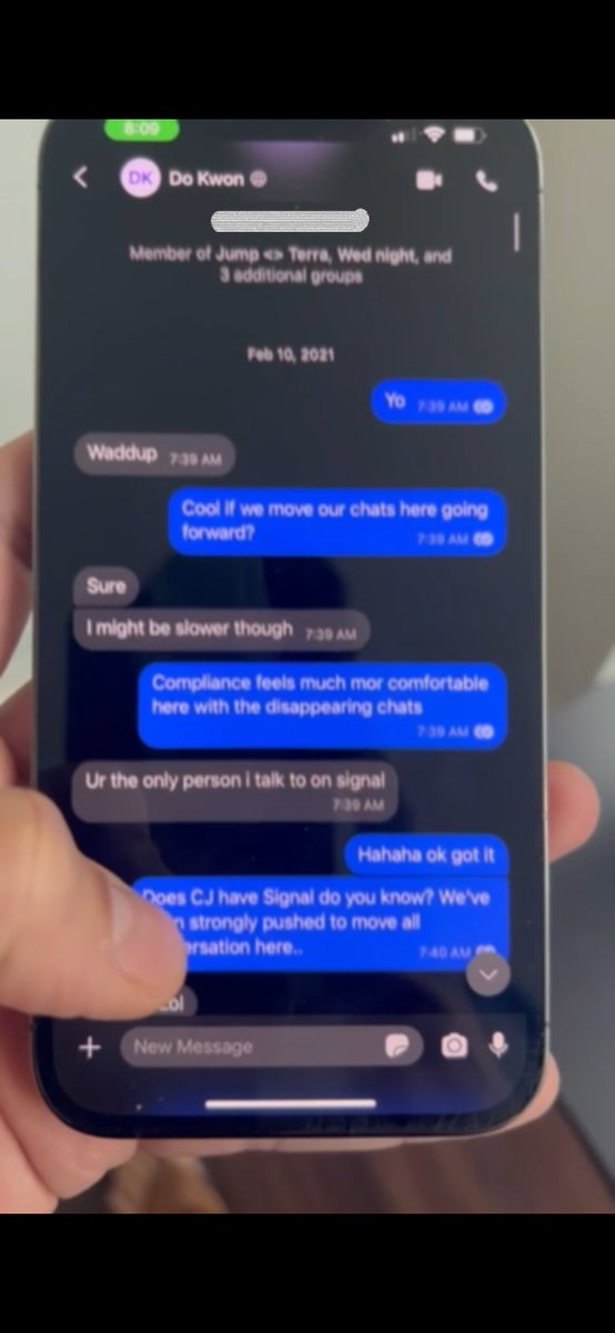 2/ In chats with Do Kwon made public by @SECGov, Kanav insisted they communicate via Signal, saying Jump was pushing for it. “Compliance feels much mor comfortable here with the disappearing chats,” Kanav said. (BTW it doesn’t seem he actually set his chats to disappear)