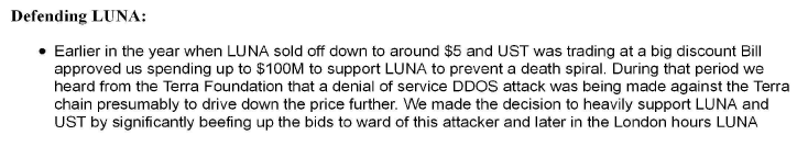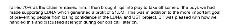 @SECGov @stablekwon 17/ In Oct 2021, a Jump employee described the team’s effort to prevent a death spiral in Terra/Luna as one of its big accomplishments for the year. Interestingly, the employee described what happened with UST that May as a “DDOS attack” against the Terra blockchain