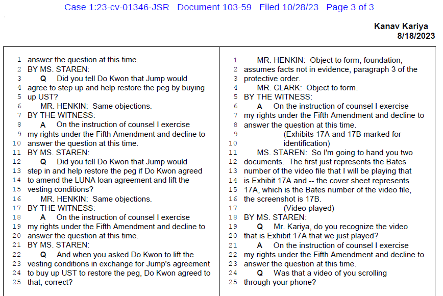 @SECGov @stablekwon 16/ It’s worth noting that Jump has not been accused of wrongdoing. Neither have Kanav Kariya nor Bill DiSomma. But both men pleaded the Fifth Amendment when @SECGov conducted depositions with them as part of the Terraform Labs case