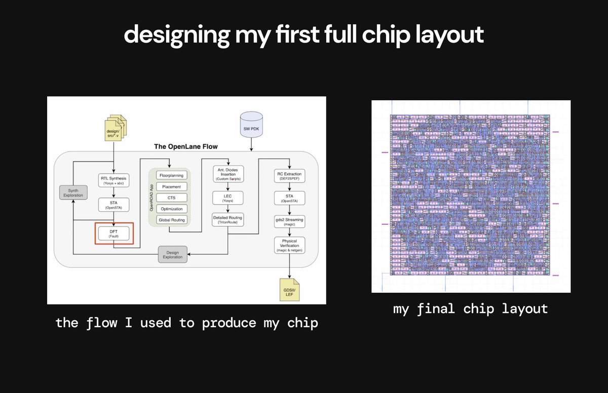 Just seeing my Verilog code get turned into an actual chip layout and being able to go in and play with all of the layers and click into each gate was a sick unlock.