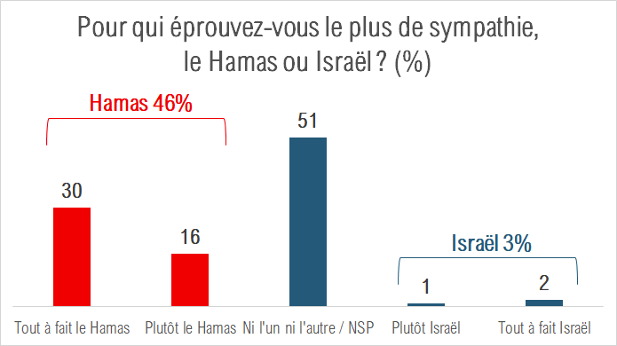 Les musulmans au R.-U. éprouvent d'ailleurs beaucoup plus de sympathie pour le Hamas (46%) qu'Israël (3%)