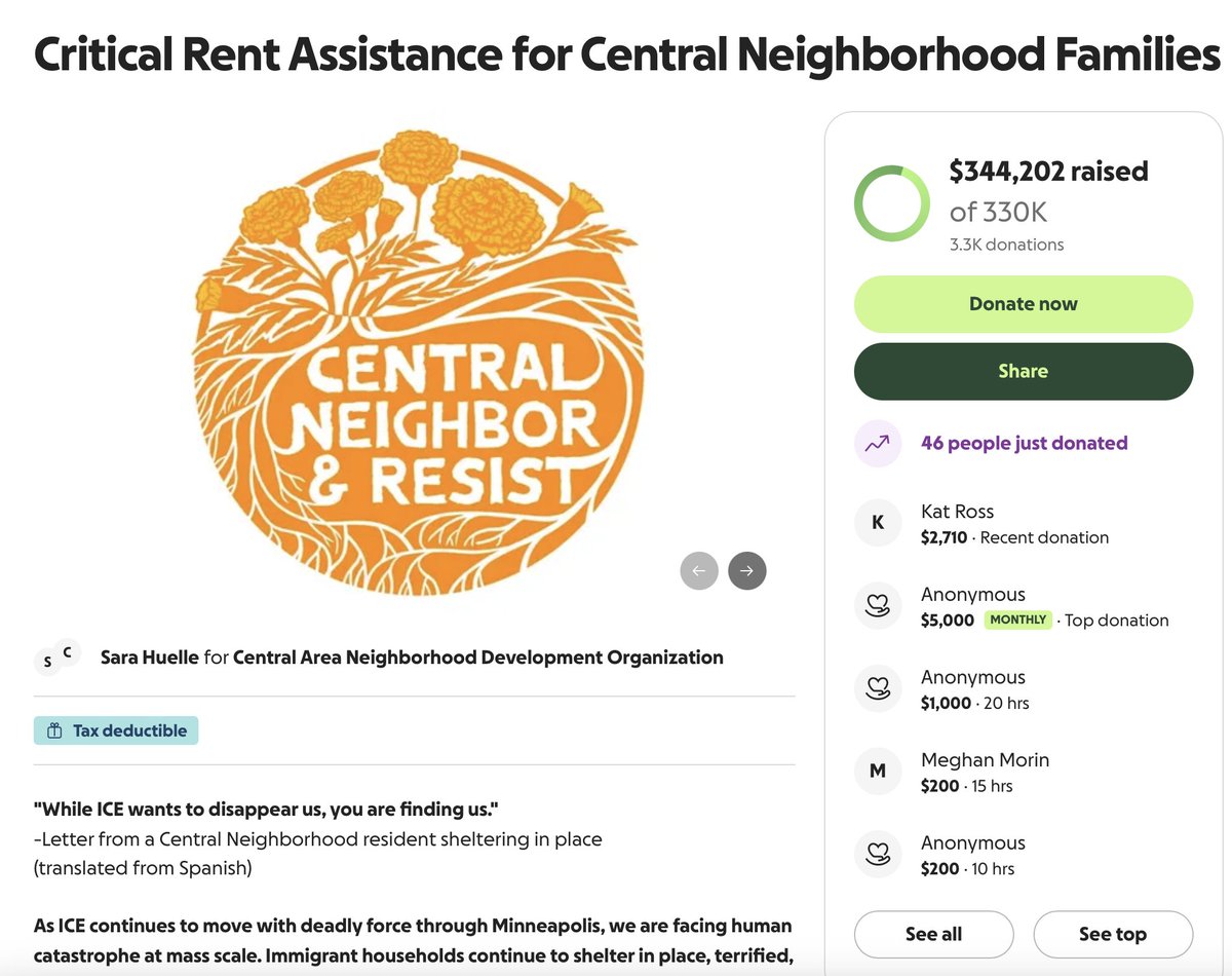 A fundraiser for immigrants in the Central neighborhood of Minneapolis raised $340,000 last month, enabling them to avoid ICE detection by staying home. gofundme.com/f/critical-ren…