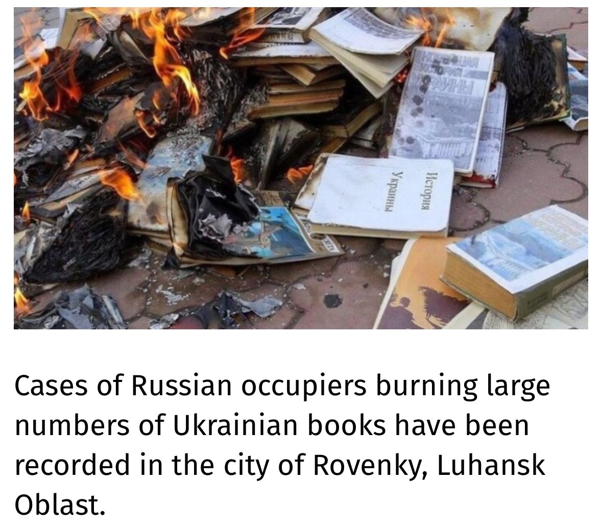 9/23 Education for millions of children has been interrupted due to the destruction of over 1,000 educational facilities. In occupied territories one of the first things russians do is burn Ukrainian books.