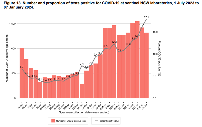 NSW Health released a surveillance report yesterday including data to 6 Jan, the first data since 16 Dec.