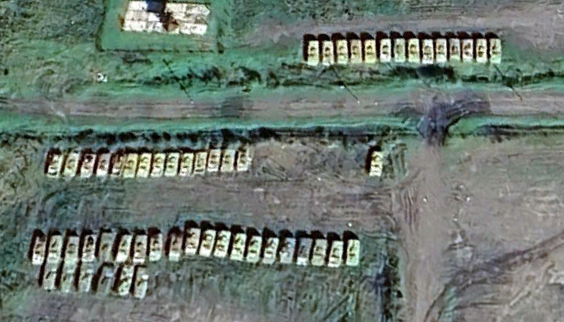 For example, the 4990th. Before the war there were over 600 MT-LBs, and we didn't get newer footage from that one in all these two years on Google Earth. But take a look at Yandex, just 91 MT-LBs remained there a while ago, three of them visibly broken hulls.