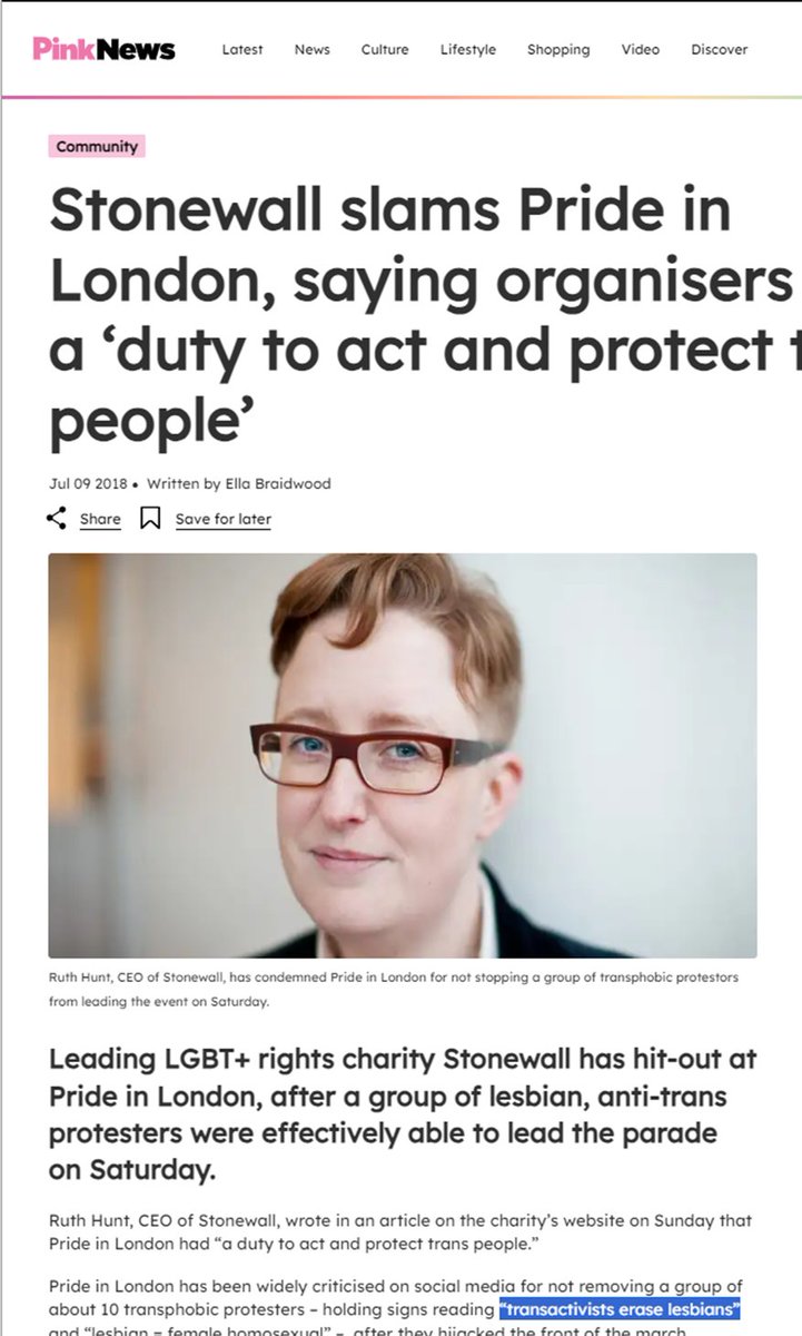 10/ Let's examine the defence lines Hunt relies upon today. This one is galling. Stonewall punished ideological not compliance like no other charity has before. Compare it to a truth @_lliesl_ highlighted for how hunt speaks about lesbians who disagree. Pink News of course.