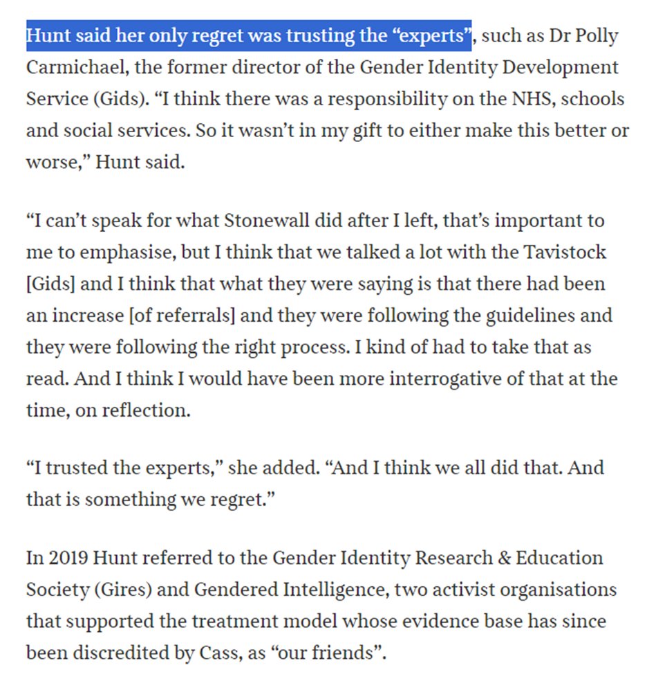 2/ I remark in passing Stonewall could have stopped the Tavistock scandal at any time. At the height of its power, had Stonewall agreed with Dr Bell, Sue Evans, Marcus Evans, Sonia Appleby it would have ended. These heroes stood up for gay youth, Ruth Hunt stood against them.
