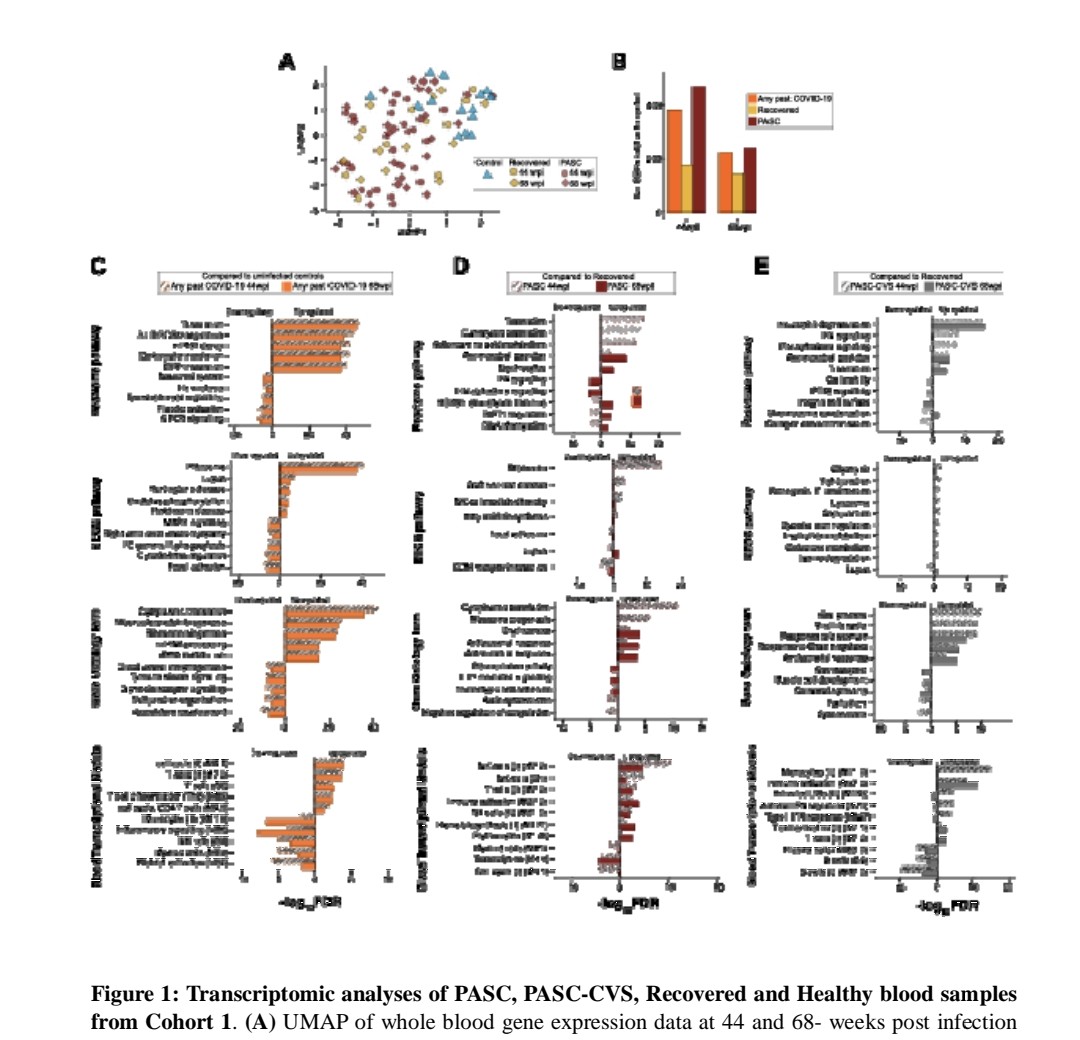 Whole blood RNA sequencing showed PASC-CVS donors had an upregulated inflammatory transcriptional signature over 500 days post-infection ...