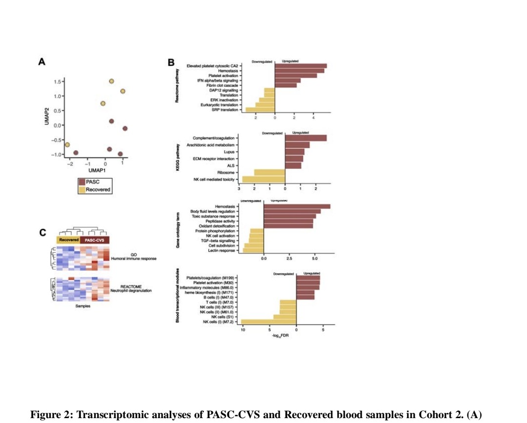 3) Two independent cohorts of PASC-CVS individuals were compared to individuals who recovered from COVID-19 without long-term symptoms.