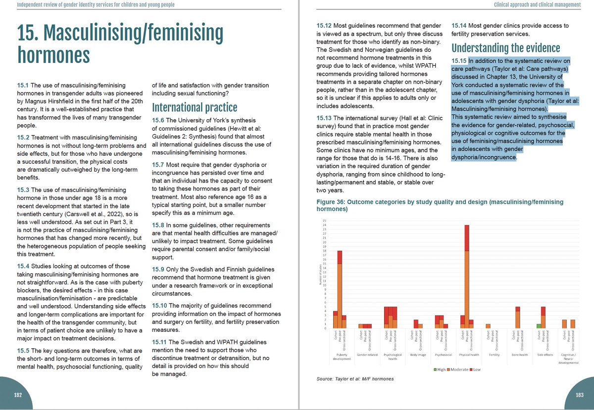 Let's zoom in to the 388-page Cass review. To see where she first folds in the findings of the systematic literature review of cross-sex hormones, go to page 183. Here is how she introduces that paper: cass.independent-review.uk/wp-content/upl…