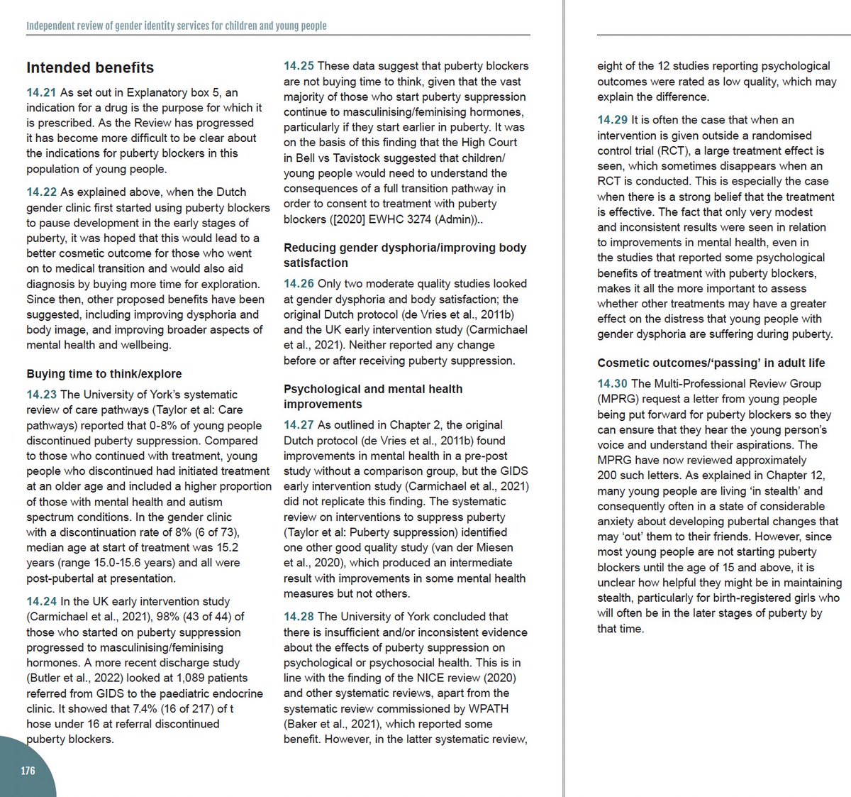 From page 176 to 177, Cass has lots to say about the specifics of the puberty blocker systematic literature review.