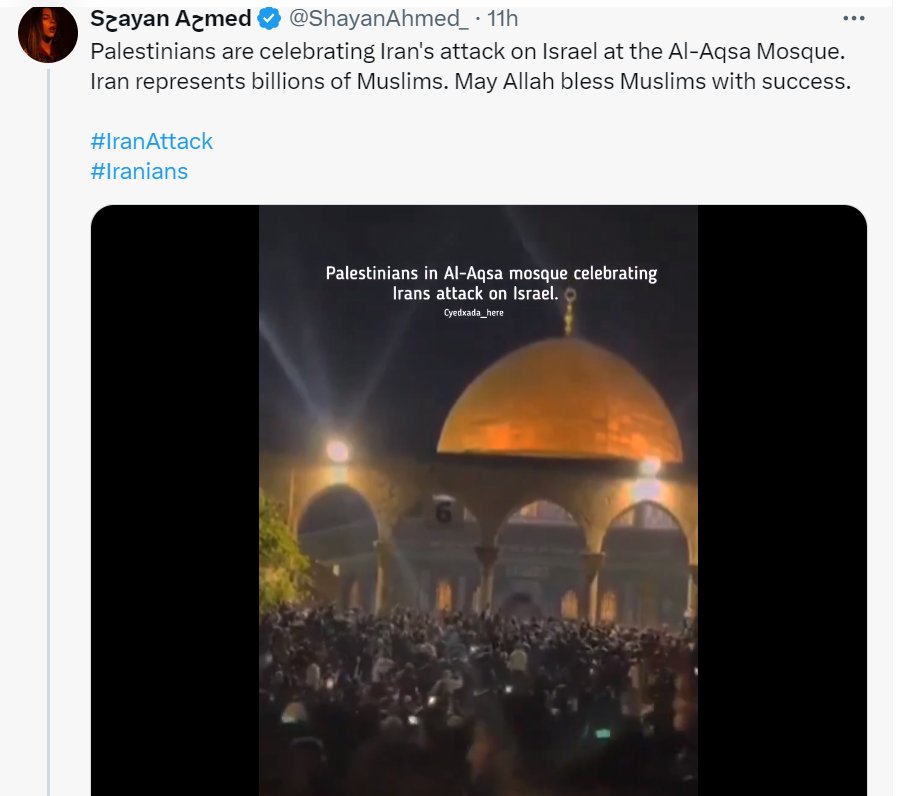 Post 3: This video of worshippers at Al-Aqsa was filmed on April 6th, 2024 - Not related.
