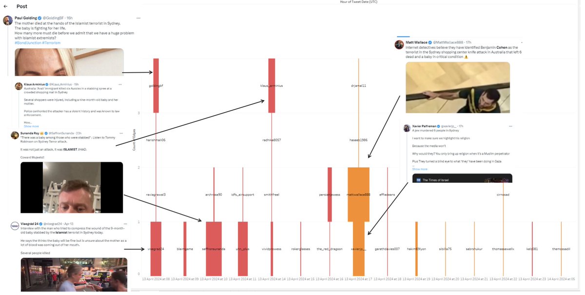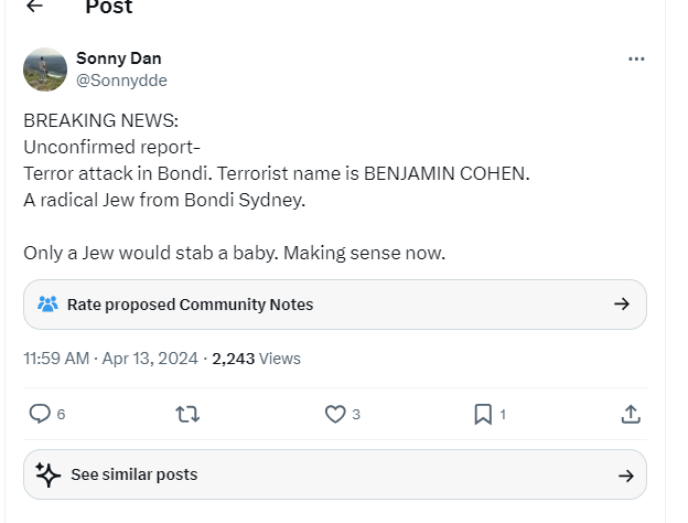 🧵1/ Thread on the Islamophobic and antisemitic disinformation about the #SydneyAttack . I downloaded X posts that wrongly stated that the attacker, Joel Cauchi, was either a Muslim or Jewish terrorist
