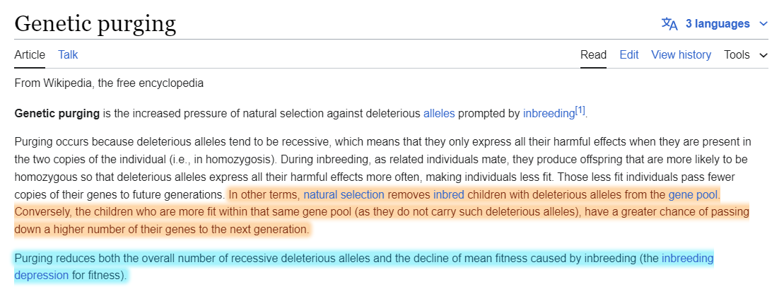 What are @cremieuxrecueil @thealthype @BronskiJoseph @KirkegaardEmil @jollyheretic's takes on this, especially that of genetic purging and outbreeding depression, and the purging or spread of exponentially increasing deletrious alleles within a gene pool over time?