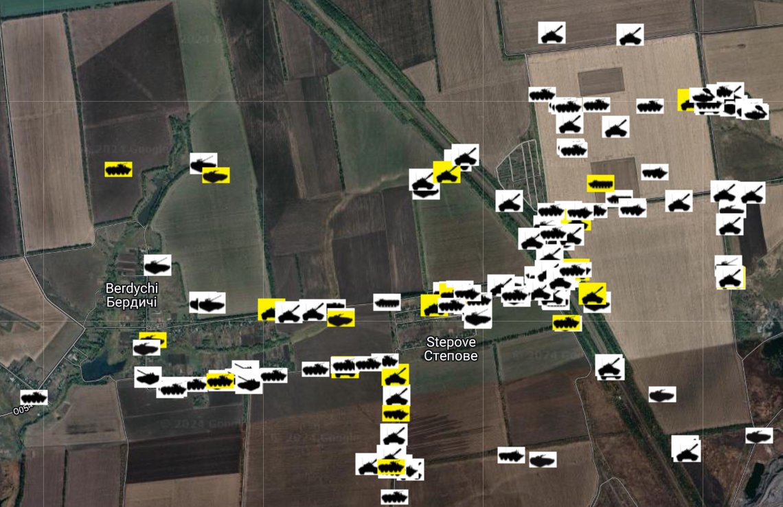 Eux aussi ont leur carte + site internet, bien mieux fait et sourcé qu'Oryx. ukr.warspotting.net/map/