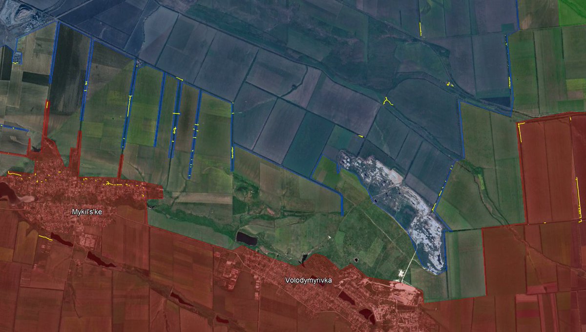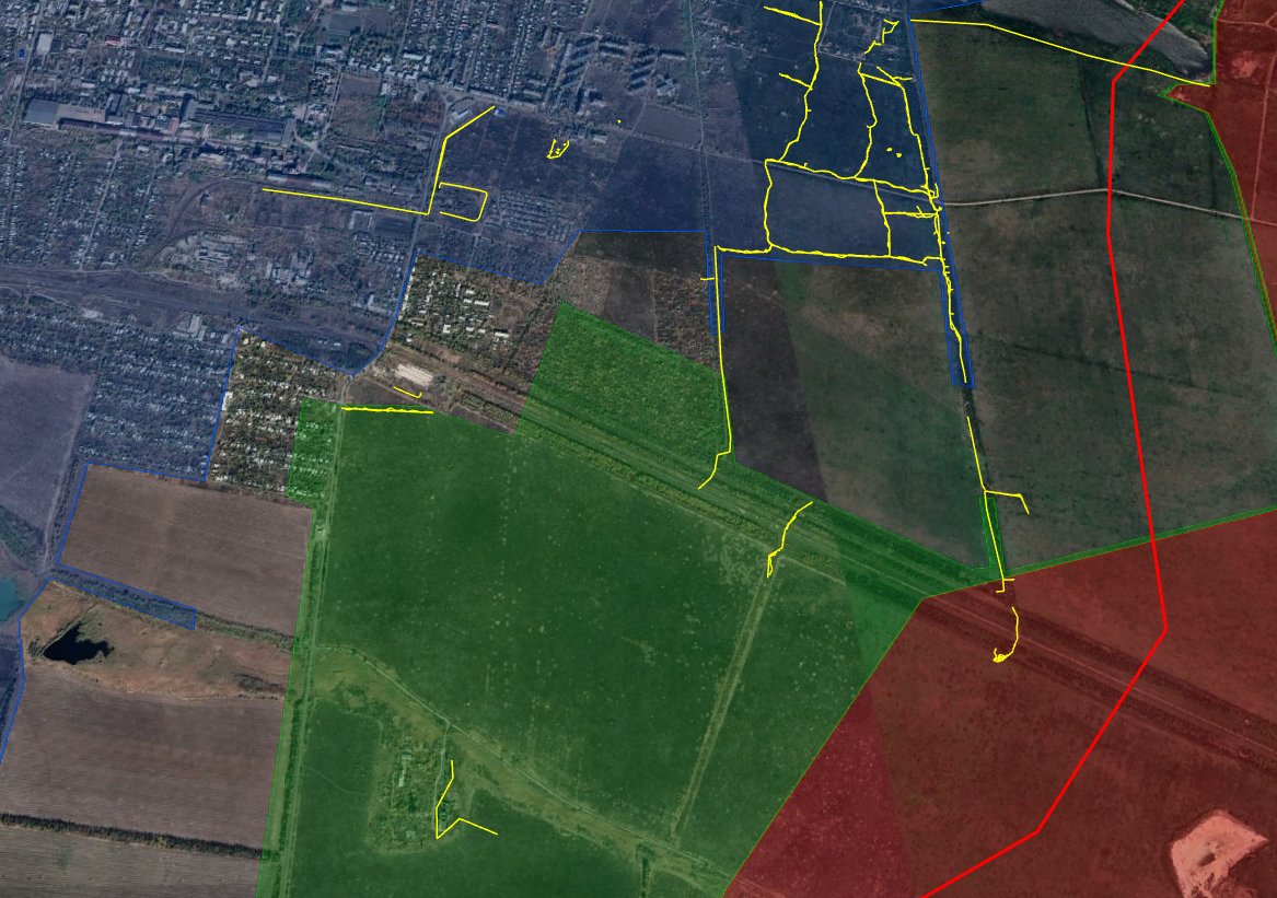 Exemple : ce champs n'étant pas contrôlé par les Ukrainiens directement (par les feux ou les mines peut-être) peu être traversé par des assauts Russes avant qu'ils n'arrivent aux positions plus au nord.