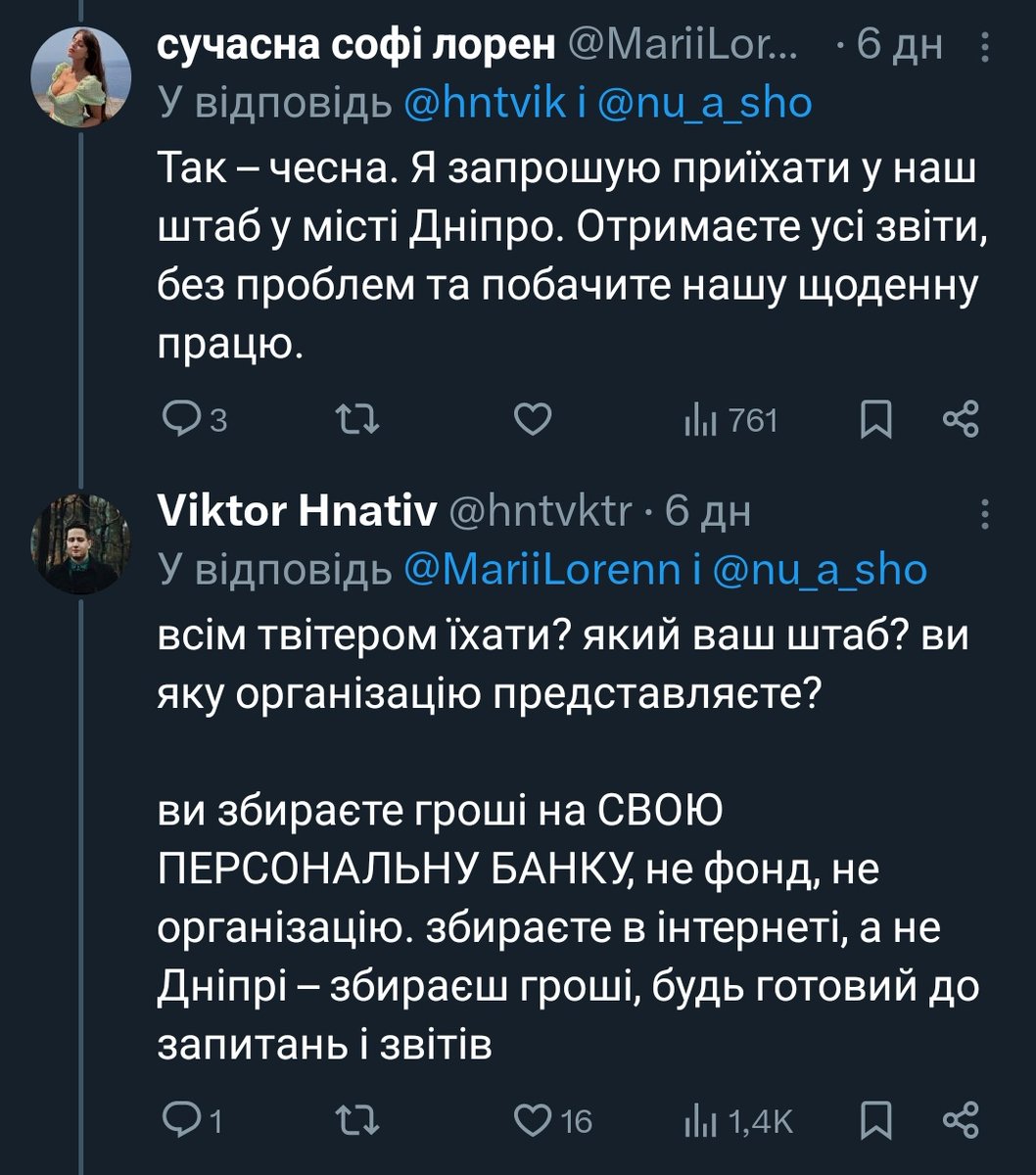 Вірю, я повірив у прозорість людей, які не можуть назвати організацію, в якій працюють і які видаляють звіти із турнікетами Дніпро "бо критикують" і більше грошей не назбираєш.