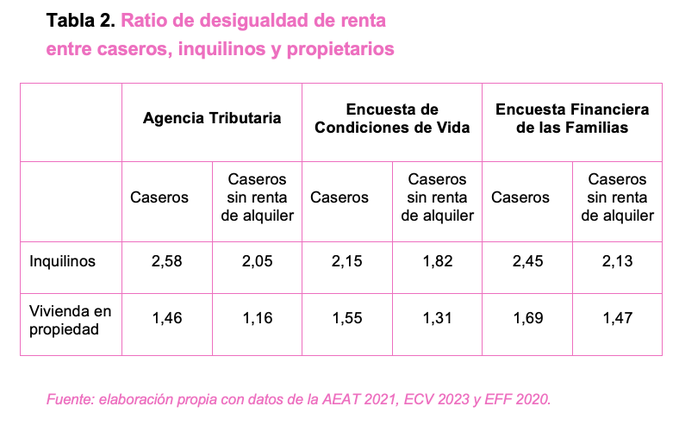 Las tres fuentes reflejan una fuerte desigualdad socioeconómica resultante de la transferencia regresiva de rentas de inquilinos a caseros.