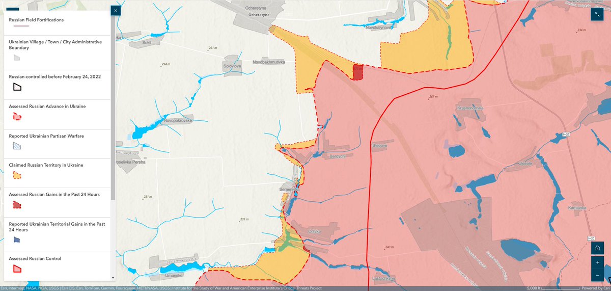 3/ Geolocated footage published on April 15 indicates that Russian forces advanced in central Semenivka (west of Avdiivka), and Russian milbloggers claimed that Russian forces advanced in the area.
