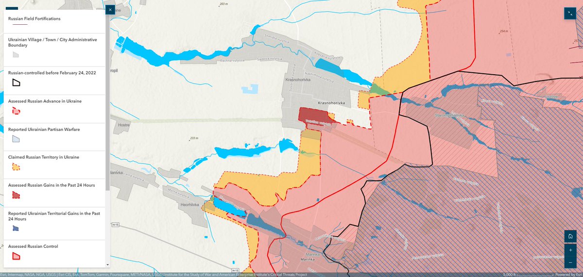 3/ Geolocated footage published on April 16 indicates that Russian forces advanced up to the Krasnohorivka brick factory, and Russian milbloggers claimed that Russian forces made further advances within Krasnohorivka (west of Donetsk City).
