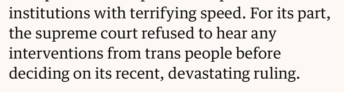 The SC was not carrying out a "consultation". Its role is statutory interpretation. They do not hear from individuals. Any LGBTQ+ organisation, eg Stonewall, could have applied to intervene. None did. 2/6