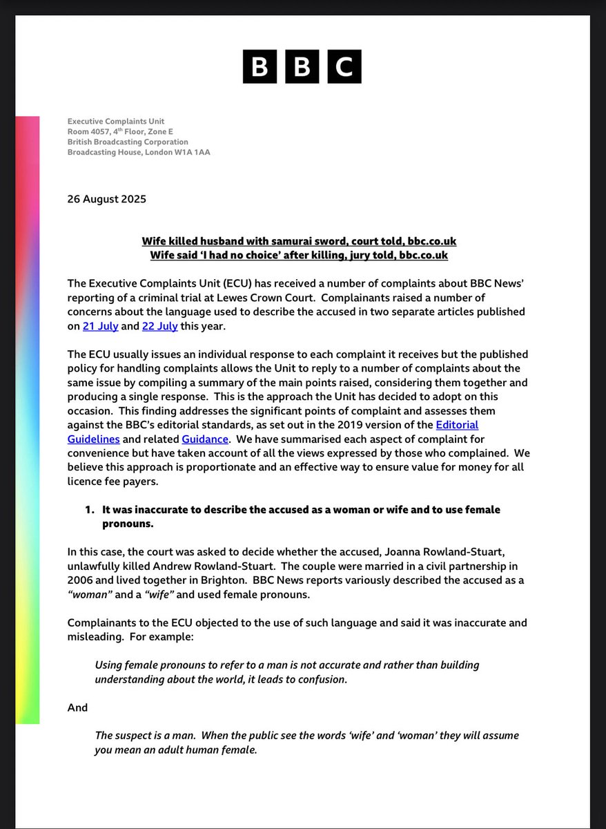 The BBC ECU have ruled on complaints regarding the “Wife killed husband with samurai sword” story.👀