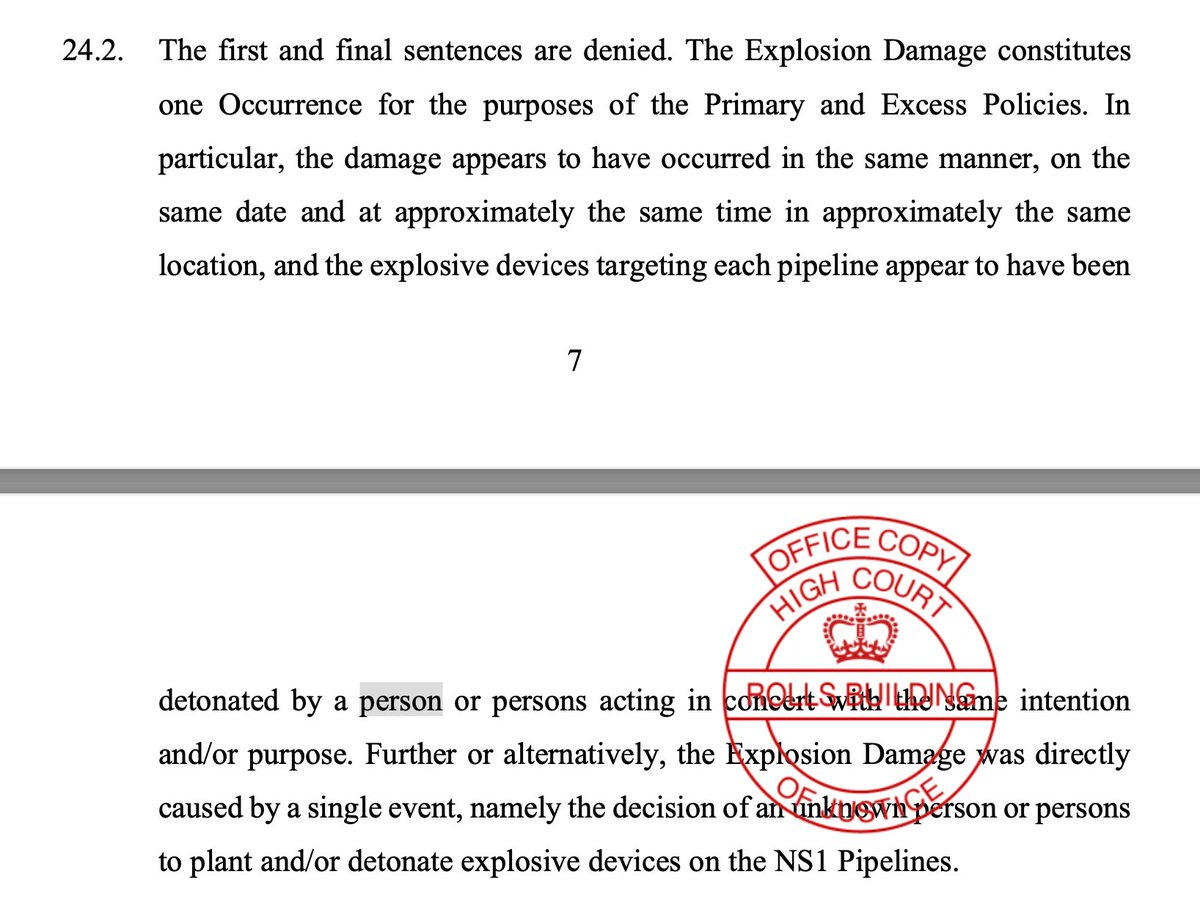 BREAKING: The "defense" of Nord Stream AG's insurance companies has been filed.