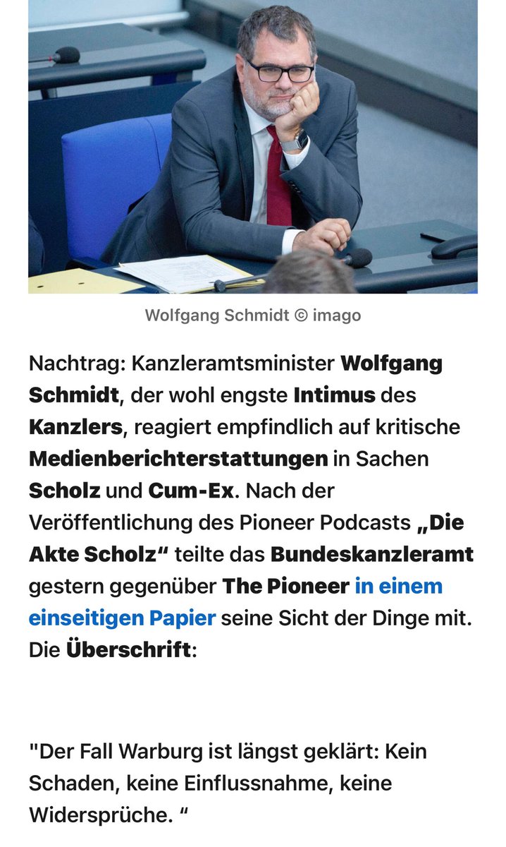 Er beeinflusst die #Medien zugunsten von Olaf Scholz und kritisiert häufig die Medienberichterstattung um die Cum-Ex-Affäre.