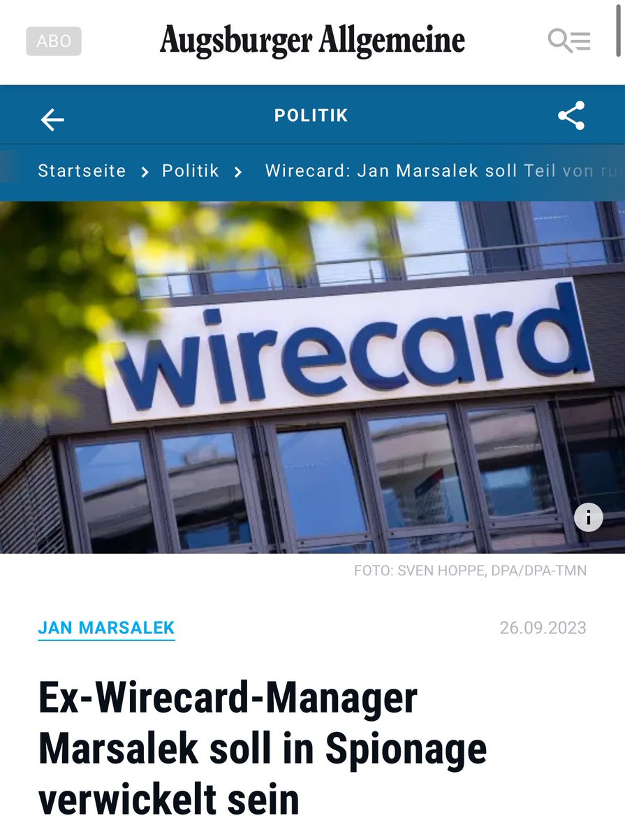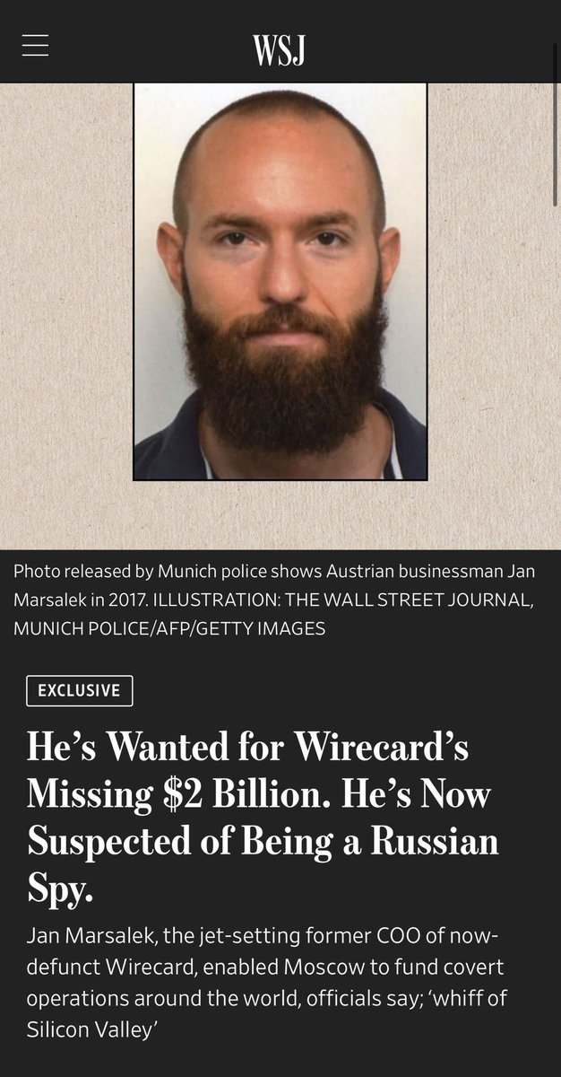 Der flüchtige Ex-Wirecard Manager Jan Marsalek wird der Beteiligung an einem russischen Spionagering verdächtigt und befindet sich derzeit in #Russland.