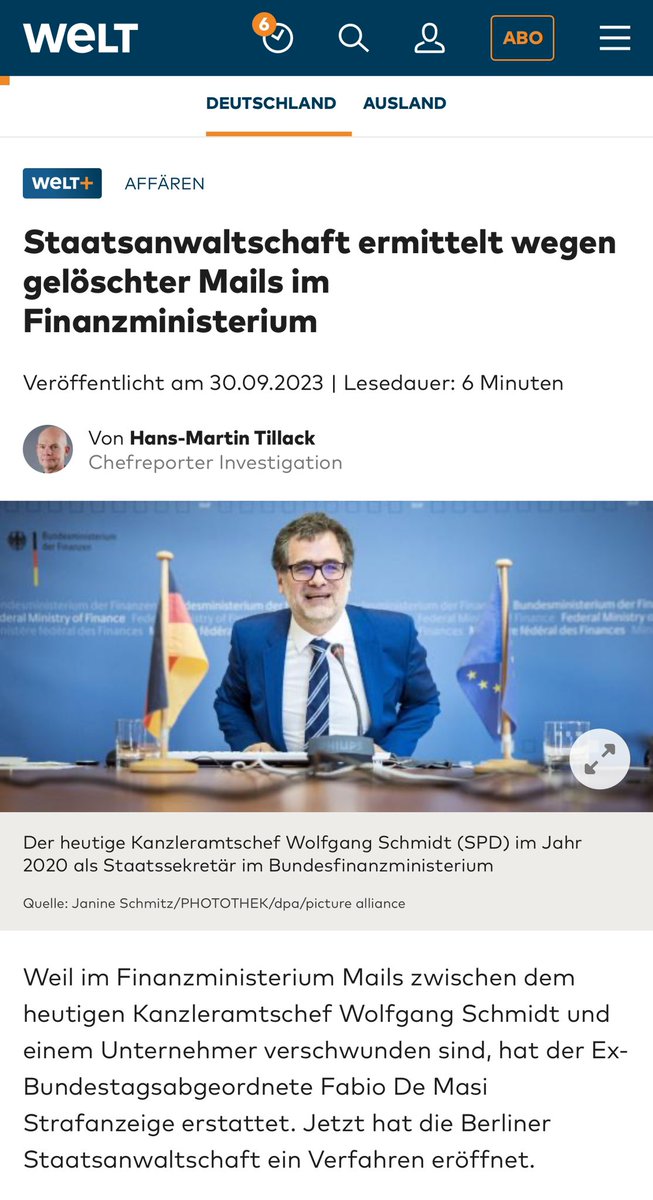 „Die Staatsanwaltschaft Osnabrück hat ein Ermittlungsverfahren gegen den Staatssekretär im Bundesfinanzministerium, Wolfgang Schmidt, eingeleitet.“