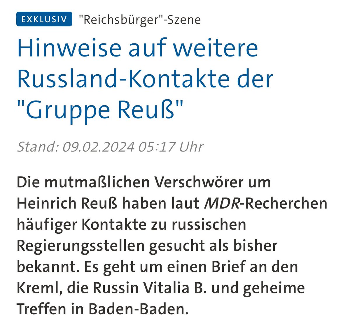 Berichten zufolge suchten und fanden rechtsterroristische Verschwörer der „Reuß-Gruppe“ häufig Kontakte zu russischen Behörden.