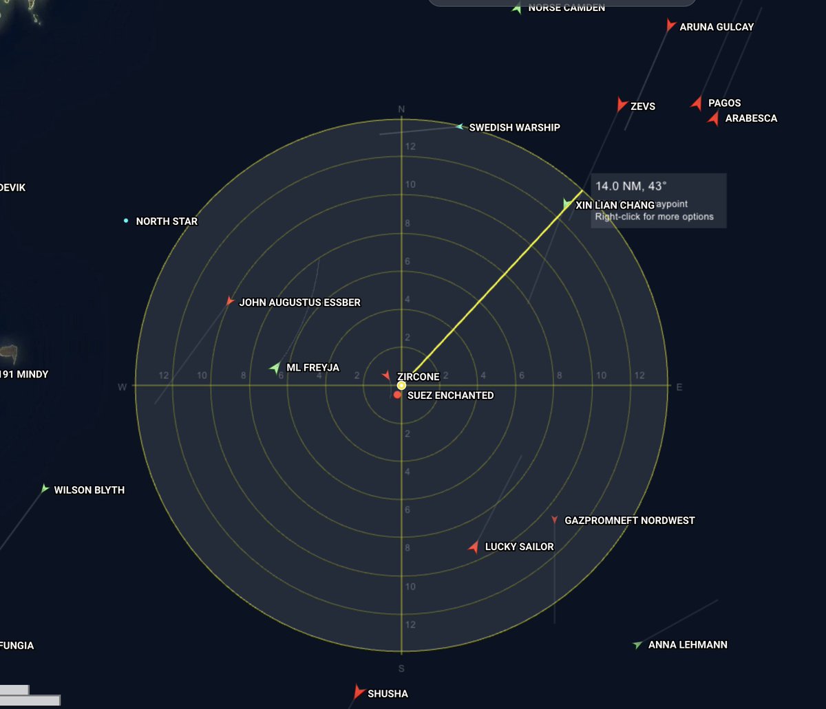 Right now, the Liberia-flagged tanker Suez Enchanted is about to do a ship to ship transfer with Zircone. Her last port is Primorsk, Russia and I suspect this is where the fuel comes from, which would make this even more illegal. Yet to be proven. @TankerTrackers