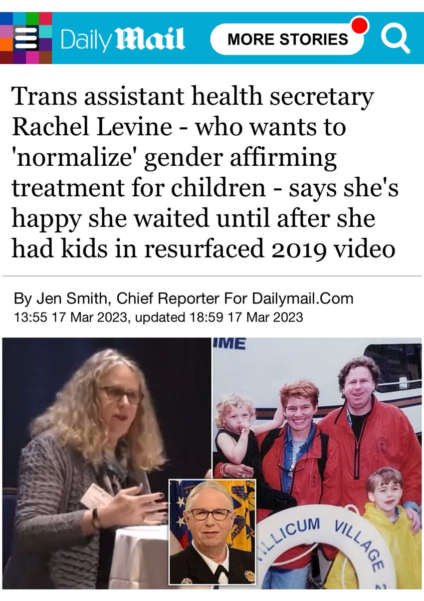 2./ “Rachel” Levine has spoken about how glad he is he waited to be sterilised because he was able to have kids. Yet as a top health official in the Biden regime this mini-me Mengele promotes drugs that lead to the sterilisation of teenagers. They’ll never be able to be parents.