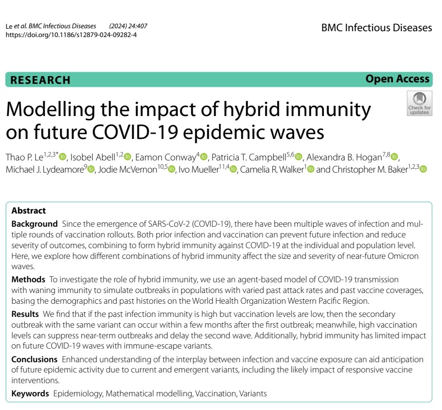 2) The study uses an agent-based model to simulate COVID-19 transmission and evaluate the impact of hybrid immunity on future epidemic waves. Hybrid immunity refers to immunity from both past infection and vaccination.