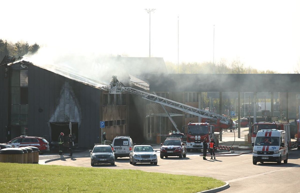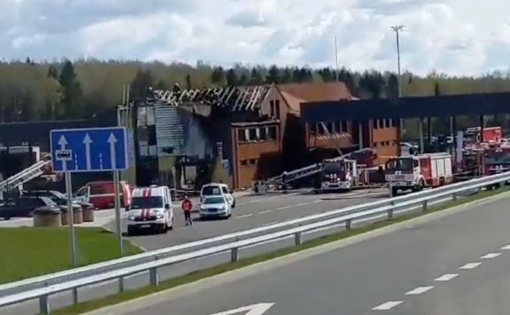 Last night, there was a fire at the Medininkai border crossing on the Belarus-Lithuania border. It’s known that the fire broke out at around 02:40. As a result, the customs hangar and the administrative part of the building burned down. The traffic through Medininkai is suspended.