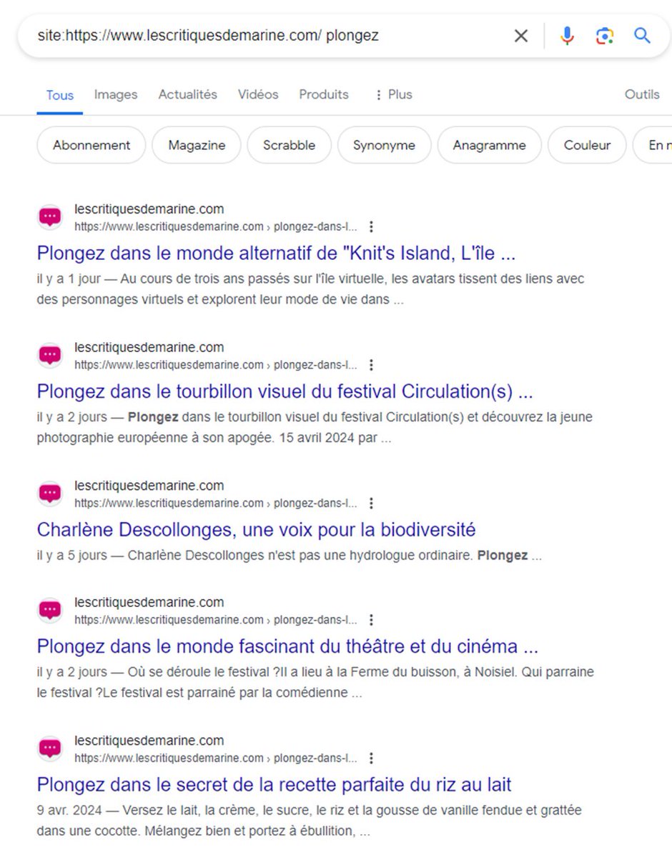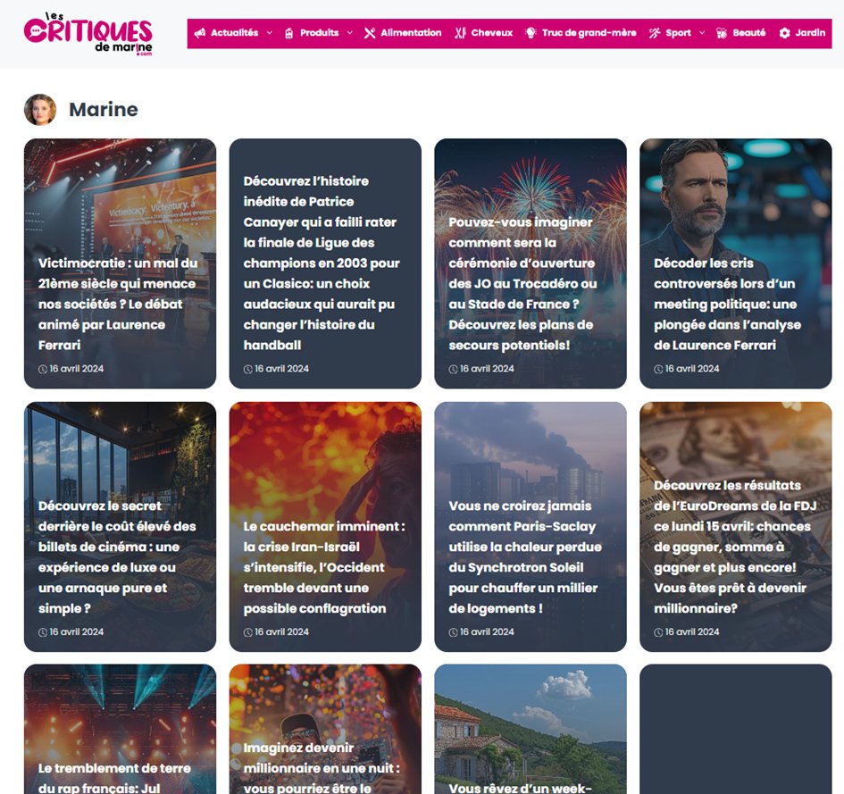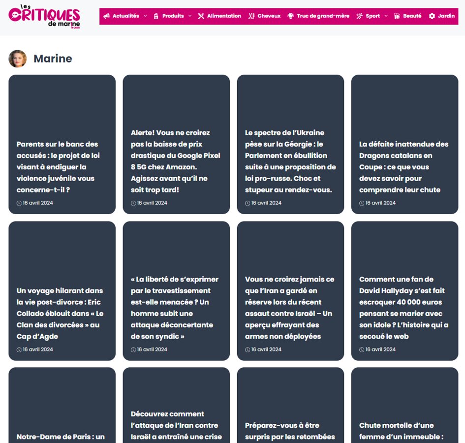 Certains sites sont des reprises. Par exemple les critiques de Marine était un vrai blog, elle y avait écrit entre 2015 et 2023 environ 400 articles et depuis 5580, en ayant changé de visage, et sur tous les sujets !!!